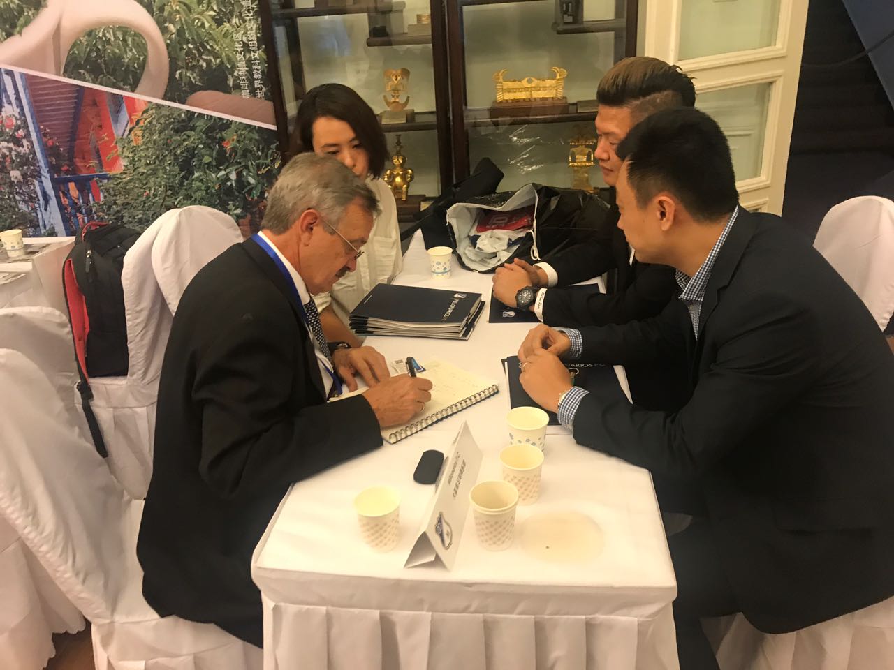 En el intercambio deportivo y cultural que se sostiene en la capital China, se estableció una rueda de negocios con encuentros entre los dirigentes del FPC, directivos de la Superliga y representantes de diversas multinacionales que se han mostrado interesados en incursionar en el balompié de nuestro país, con acuerdos financieros y de desarrollo que favorecerán a ambas partes.