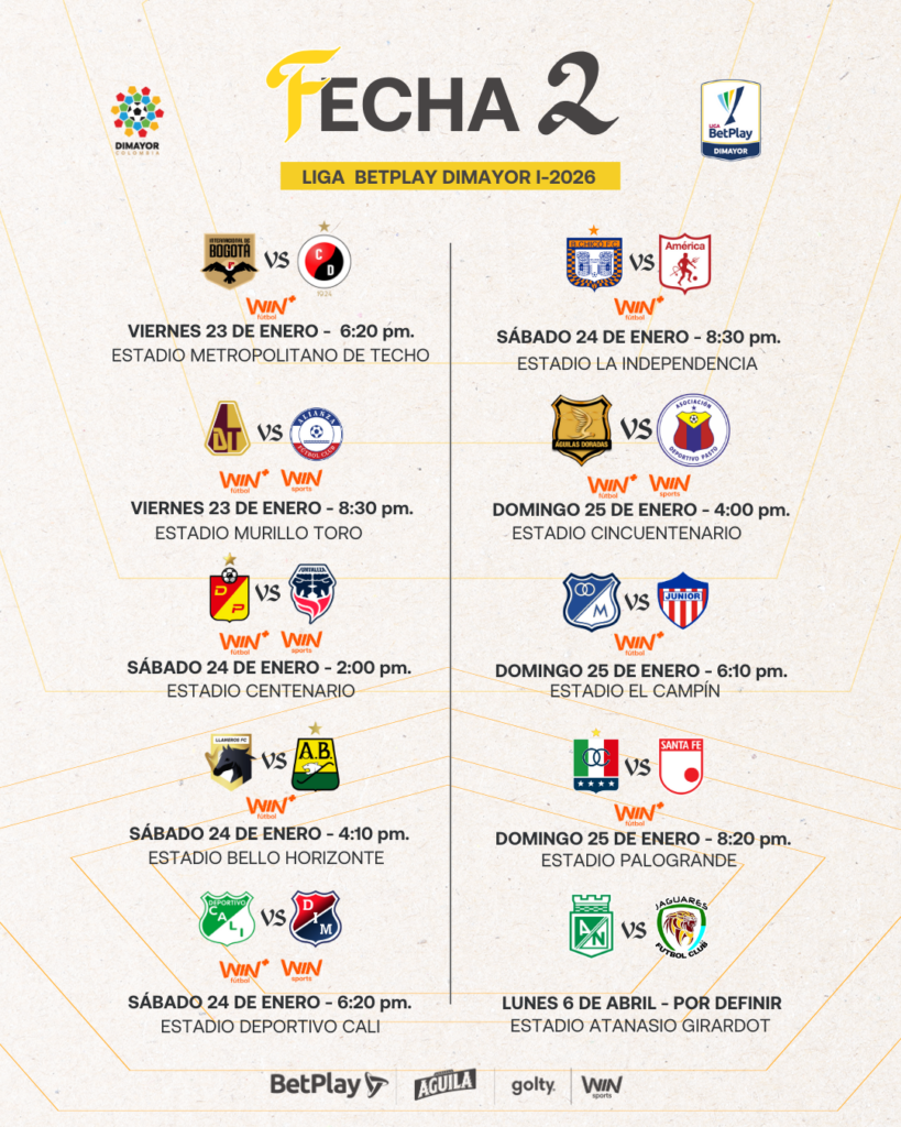 Así se jugará la fecha 2 de la Liga BetPlay DIMAYOR l-2026