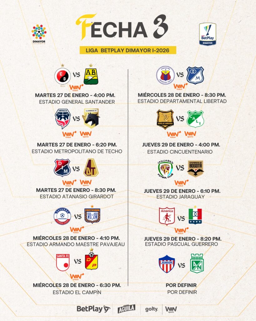 Así se jugará la fecha 3 de la Liga BetPlay DIMAYOR l-2026