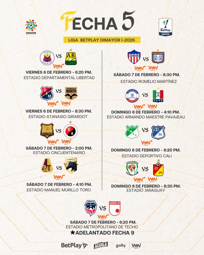 Así se jugará la fecha 5 de la Liga BetPlay DIMAYOR l-2026