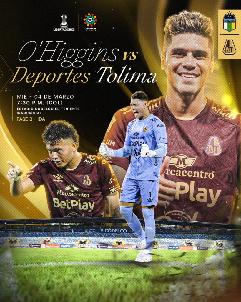 O’Higgins y Deportes Tolima se enfrentarán por el partido de ida de la Fase 3 este 4 de marzo en el Estadio Codelco El Teniente, a las 7:30 PM.