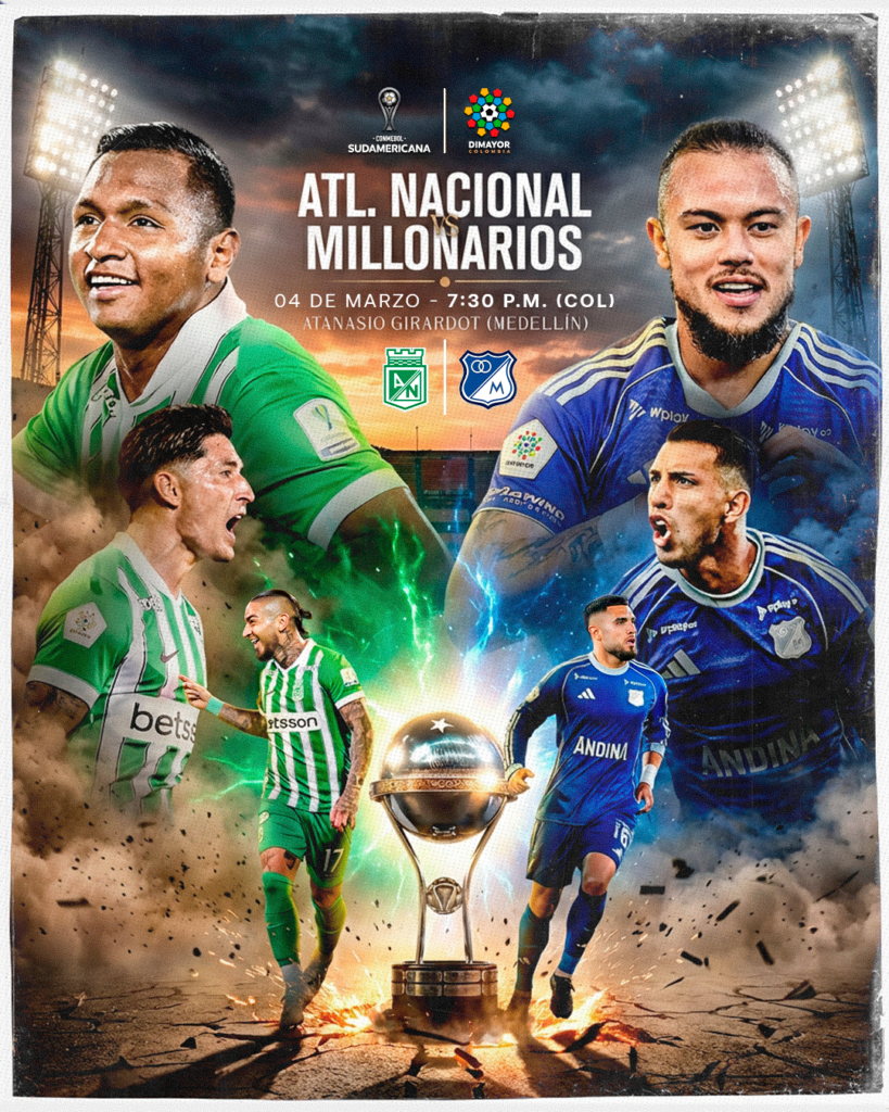 Este 4 de marzo, Atlético Nacional y Millonarios FC se enfrentarán en el Estadio Atanasio Girardot a las 7:30 p.m., en un duelo decisivo por la CONMEBOL Sudamericana 2026. Este duelo corresponde a la fase previa del torneo.