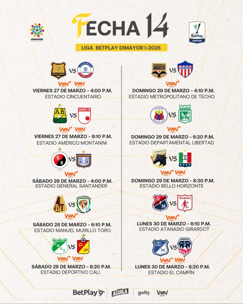 Así se jugará la fecha 14 de la Liga BetPlay DIMAYOR l-2026