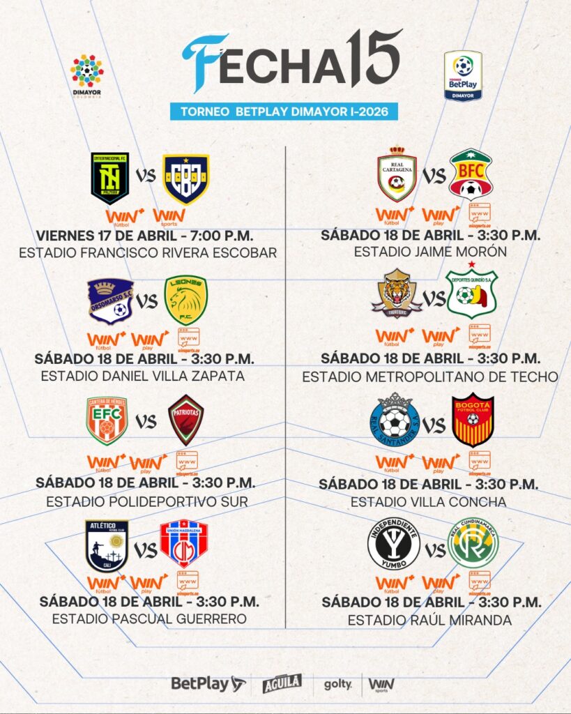 Así se jugará la Fecha 15 del Torneo BetPlay DIMAYOR l-2026